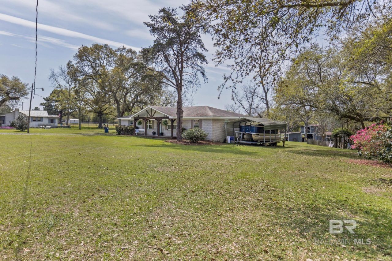 Welcome to this beautiful farmhouse-style ranch home in Theodore, AL, just minutes from I-10. This property features 6 acres of land, a huge, covered back deck, a flowing creek with some areas deep enough to swim, barn, chicken coop, storage shed, and a covered area for a boat or car. Inside, you'll find 4 bedrooms and 3 full baths, with a split bedroom layout and a sunroom off the primary suite. The open-concept living, dining, and kitchen area includes a spacious laundry room with office space off the living room, while the kitchen is equipped with an island, gas range, and pantry. Enjoy evenings on the back deck, overlooking the stunning oak trees and expansive acreage. The farm animals?pigs, goats, hens, a rooster?are optional with purchase. Per seller recent updates include: (roof 2019) windows (2023). Buyer or buyer's agent to verify all information deemed important to the buyer. Buyer to verify all information during due diligence.