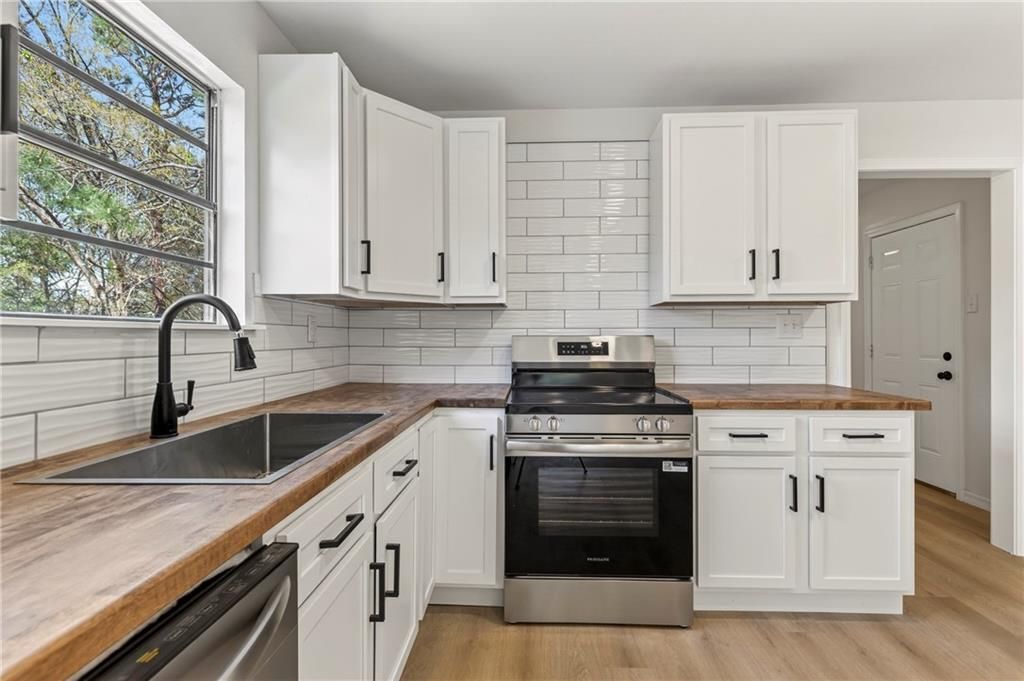 Welcome to this fully renovated home featuring a newer roof and brand new AC, offering a comfortable and functionallayout throughout. This inviting property includes two separate living areas, a spacious laundry room, and a large garagewith plenty of room for storage or workspace. The kitchen offers custom shelving for added organization and style, whilethe primary suite features a beautiful custom-tiled shower. With its thoughtful updates and generous interior space, thismove-in-ready home is designed for both everyday comfort and easy living.