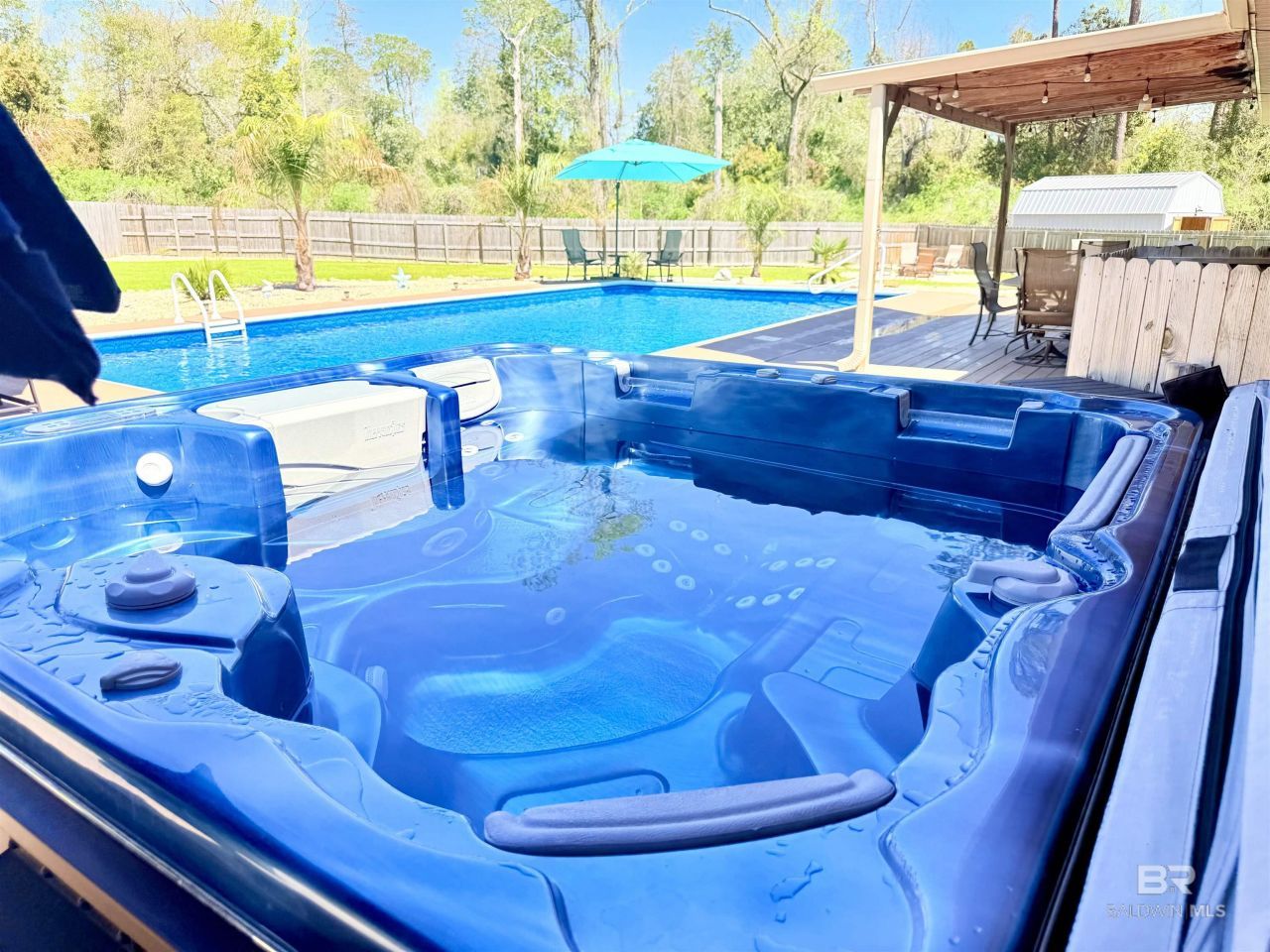 Tucked at the end of a cul de sac, is a move-in ready contemporary home offering a rare blend of privacy, thoughtful upgrades, and a true park-like setting on just over 1.5 acres. From the moment you arrive, stunning stained glass French doors set the tone for the character and warmth found here. Recent improvements include a 2021 FORTIFIED ROOF, 2022 HVAC system, added INSULATION, continuous FLOORING, HIGH END IMPACT-RESISTANT WINDOWS, fully renovated bathrooms, updated lighting, GUTTERS, fresh PAINT and a GENERATOR QUICK CONNECT, and more.Inside, the spacious living room feels both open and inviting, featuring exposed beam ceilings, and electric fireplace. Throughout the home, oversized windows frame peaceful, park-like scenery views from your own meticulously landscaped yard!Wide open doorways, lead to the kitchen/dining areas. Perfectly, updated kitchen is both functional and well-appointed with abundant cabinetry, solid surface countertops, stainless steel appliances, a farmhouse sink, wrap around breakfast bar, and double pantry. Flexible dining spaces offer versatility, including an ideal home office option with those pool and/or park like views.The primary suite offers room for a sitting area, a large walk-in closet, and a bathroom with ample storage. Two additional bedrooms are generously sized, with ample closet space.Step outside to your own backyard oasis featuring a 40 x 20 saltwater pool, hot tub, and over 13,000 sq feet of fenced area with space for fur babies to roam. The covered porch and extended deck provide ideal spaces for relaxing, dining, or entertaining while enjoying gorgeous sunsets or a just quiet morning.Additional features include a pristine, finished side-entry garage, versatile mudroom, and a 20 ft storage shed with loft. Termite bond with Arrow transferable. Shopping, walking trails and schools nearby while tucked away between the 2 roadways paving the pathway from the interstate to the beautiful sugar Buyer to verify all informatio