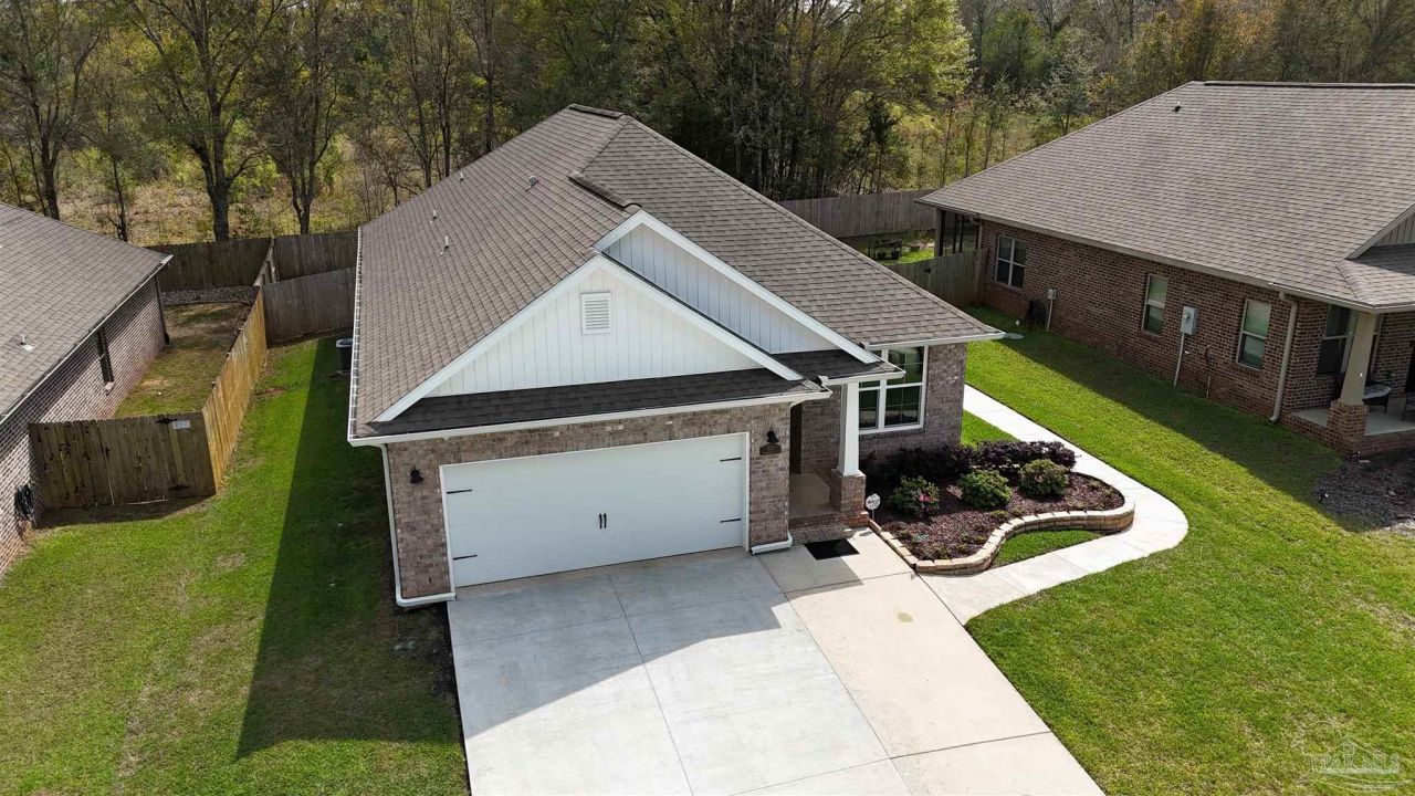 Well-maintained and move-in ready, this beautiful 3-bedroom, 2-bath brick home in the highly sought-after Bradfield subdivision offers the perfect combination of comfort, style, and functionality in one of Cantonment's most desirable neighborhoods. With 1,660 square feet of living space, this home features a thoughtfully designed layout with generous-sized bedrooms, providing plenty of room to relax and unwind. Inside, you'll find a blend of durable luxury vinyl plank flooring in the main living areas and plush wall-to-wall carpet in the bedrooms, creating both style and comfort throughout. The kitchen and bathrooms are upgraded with granite countertops, offering a clean, modern look that pairs perfectly with the home's overall design. The spacious living area flows seamlessly to the outdoors, where a large covered back porch provides the ideal setting for entertaining, grilling, or simply enjoying quiet evenings at home. One of the standout features of this property is the extended sidewalk that runs from the front of the home all the way to the backyard-adding both convenience and curb appeal. The two-car garage offers ample space for parking and storage. Located in what is widely considered one of the best subdivisions in Cantonment, Bradfield offers a welcoming community atmosphere while still being close to shopping, dining, and top local amenities. This home checks all the boxes-modern finishes, functional layout, and an unbeatable location.