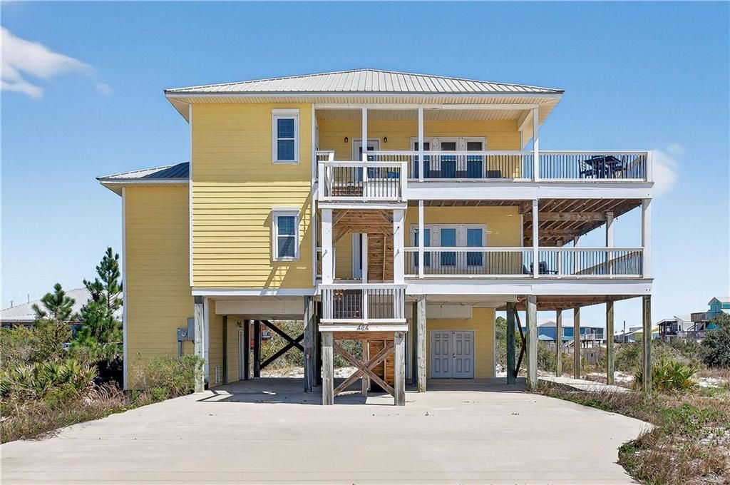 Investment opportunity or private coastal retreat just steps from the beach. This fully furnished 5-bedroom, 4-bath home offers the perfect combination of comfort, flexibility, and income potential. The upper level features an open-concept kitchen and living area with stunning Gulf views, along with a spacious primary suite and an additional guest bedroom. The main level provides a second living area and additional bedrooms, creating an ideal layout for hosting guests or maximizing rental opportunities. Whether you're looking for a weekend getaway or a turnkey vacation rental, this home checks all the boxes. Conveniently located just one block from beach access and only minutes from Fort Morgan Marina, local restaurants, and nearby grocery options, this property offers both relaxation and accessibility. Buyer to verify all information during due diligence.