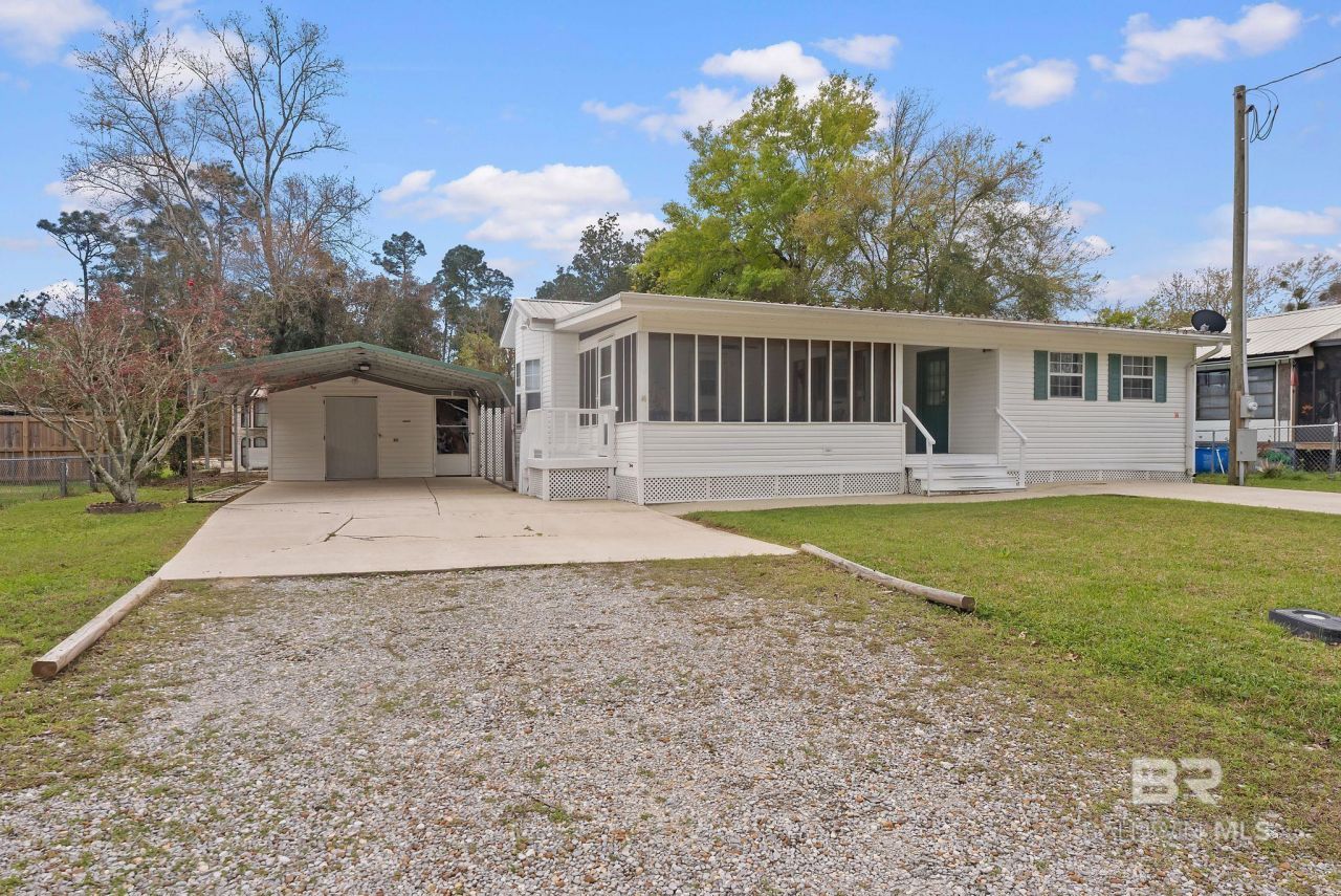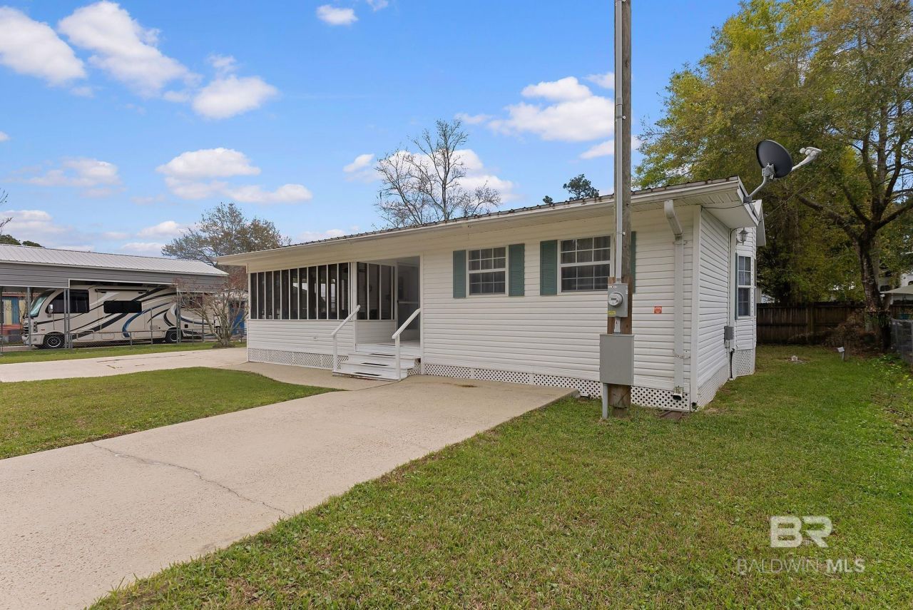 Well-maintained mobile home on a spacious double lot in the Spanish Cove community of Lillian, AL! This property features a double carport, outdoor storage, and a fully updated cottage with new plumbing, electrical wiring, and panel box?perfect for guests or extra space. Recent upgrades include new electrical service from the road to the mobile home, plus a 50-amp RV hookup, generator hookup, and hot tub connection. Plumbing updates include a new main water line, all new plumbing under the mobile home, and a tankless water heater. Additional improvements include new tie-downs, anchors, and a 2025 certification sticker. Fresh paint on both the mobile home and cottage, and A/C serviced in 2024.Enjoy Spanish Cove amenities including a clubhouse, fishing pier, private beach, and a community pool that is covered and heated in the winter. Buyer to verify all information during due diligence.