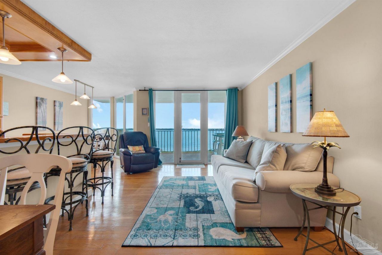 Welcome to Unit 1053 in Tower 10 at Santa Rosa Dunes-a well-positioned 1-bedroom, 1.5-bath high-rise condo offering sweeping views of the bay and surrounding water. Perched in one of the community's most desirable towers, this unit captures beautiful natural light and tranquil coastal scenery from its elevated vantage point. Enjoy your mornings and evenings on the private balcony overlooking the water, where you can take in stunning sunsets and spot dolphins and local marine life. With both bay and beach access just steps away, you'll have endless opportunities for relaxation-whether it's paddleboarding, lounging by the community pool, or enjoying the sugar-white sands of Pensacola Beach. While the interior offers a great layout, it presents an excellent opportunity for a buyer to update and customize to their own taste. Ideal as a second home or investment property, this unit delivers location, views, and potential all in one.